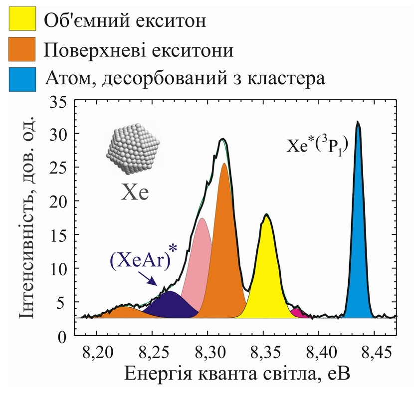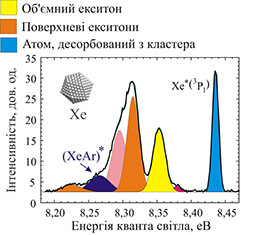 ● Виявлено екситонно-домішкову люмінесценцію в кластерах ксенону з некристалічною