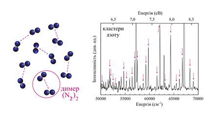 ● Виявлено утворення в кластерах N2 та Ar-N2 молекулярних димерів (N2)2, що можуть