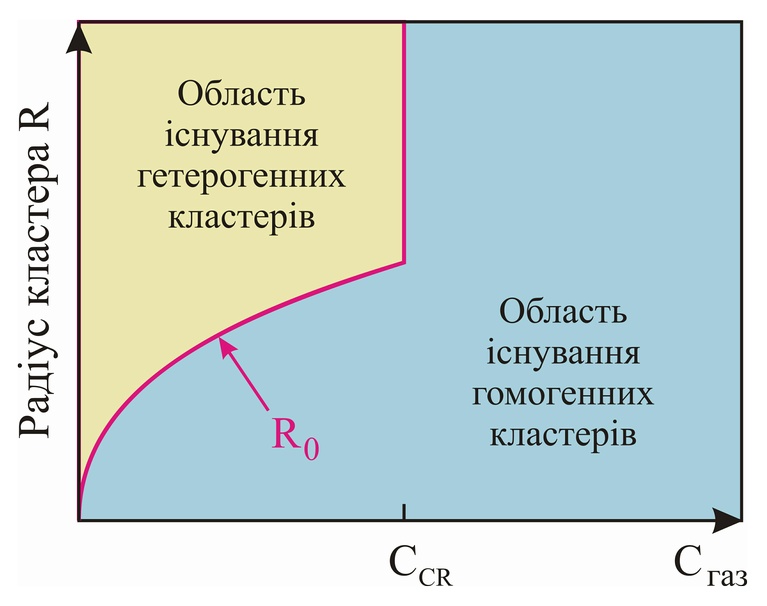 Визначення областей існування одно- та двокомпонентних кластерів, отримуваних з двокомпонентних газових сумішей речовин з необмеженою взаємною розчинністю [Low Temp. Phys. 41, No. 8, 637 (2015)].