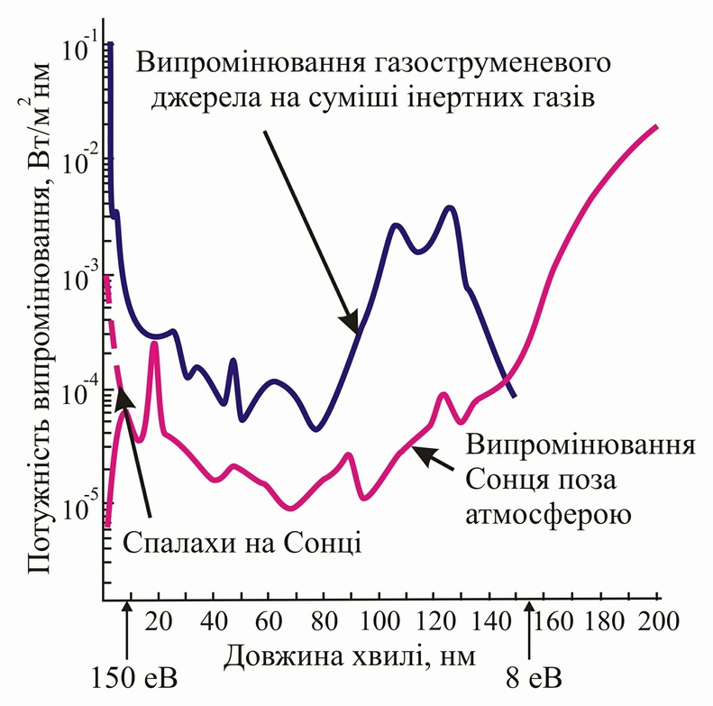 ● Розробка імітатора ВУФ та УМР випромінювання Сонця на кластерних струменях.