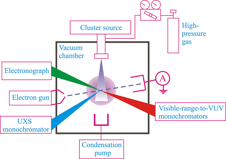 • an electron diffraction apparatus designed to study structure, phase composition, temperature, and average size of clusters;